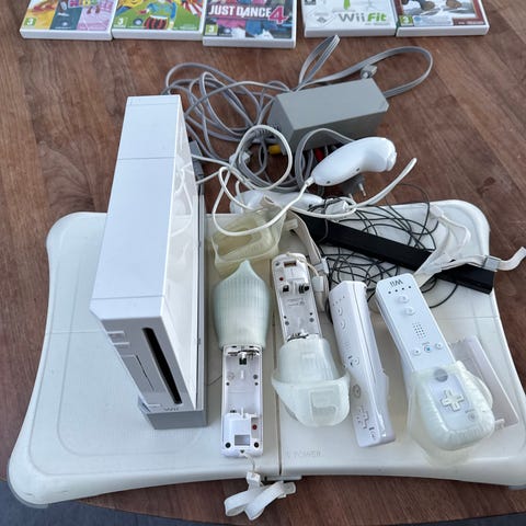Nintendo Wii spillekonsol med controllere og tilbehør