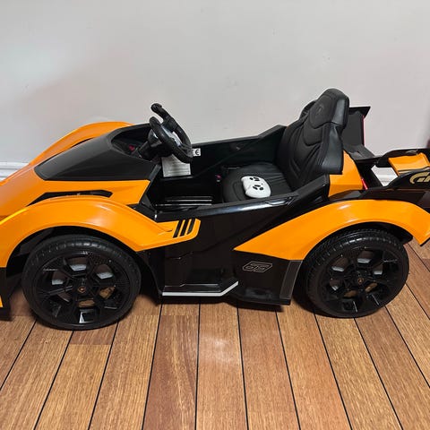 Der følger en fjernbetjening hvor man kan som forældre styre bilen. Bilen har også radio/sd kort med musik.