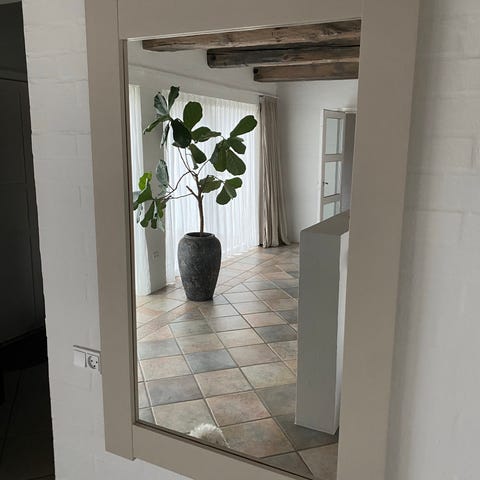 Grøn ramme i træ med spejl sælges. Kan hentes i Stepping