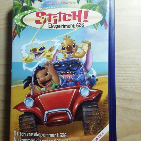 Walt Disney Lilo & Stitch VHS børnefilm. Filmens cover viser karaktererne Lilo og Stitch. VHS-båndet indeholder filmen i standardformat.