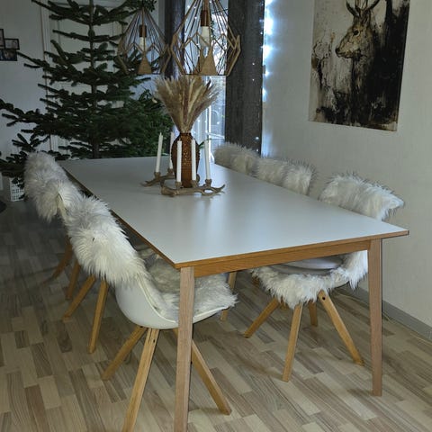 6 flotte Arthur spisebordsstole i eg hvid olie. Billede vedhæftet af prisen i sort farve. Bordet gav vi 8500kr fra ny.