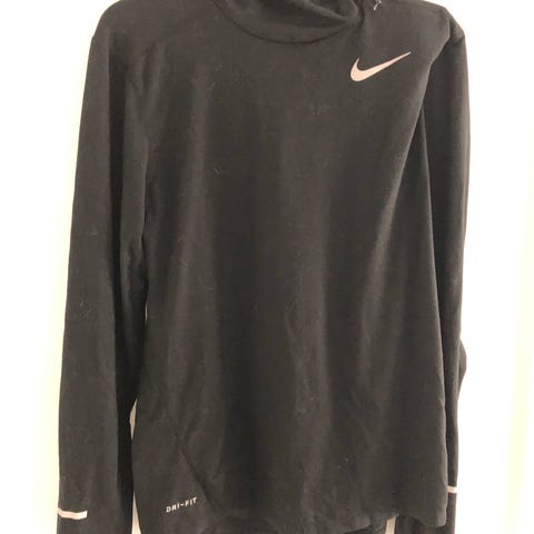 Dri-FIT Løbetrøje fra Nike, sort med orange detaljer ved ærmerne, den er ideel til løbeture.