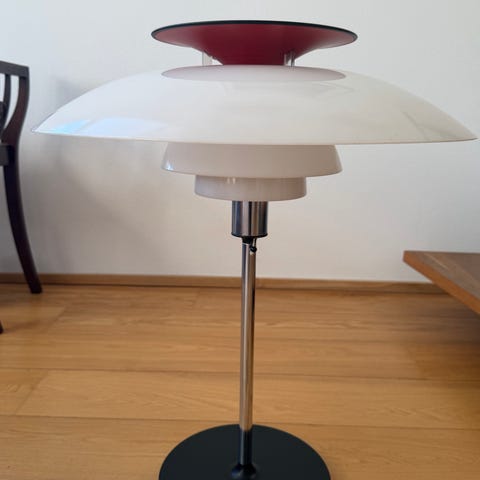 Flot bordlampe. Skærm Ø 50cm. H 67 cm stor skærm har revne