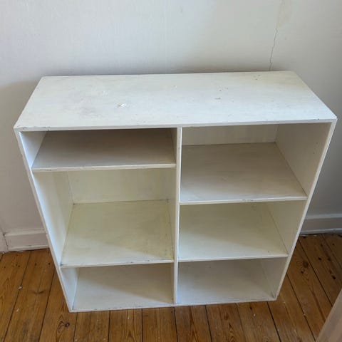 Reol, hylde i hvidpigmenteret massivt træ