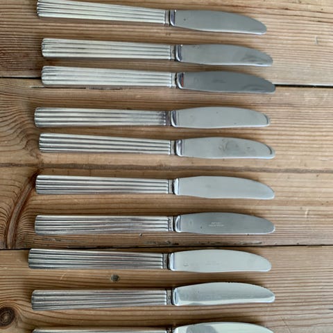 6 knive i sterling sølv. Frugtknive, 16 cm, pyramide. Blad er rustfrit.