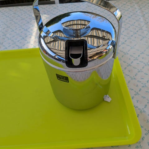 I god stand (som ny). Kan indeholde l liter. Højde med låg 20 cm.