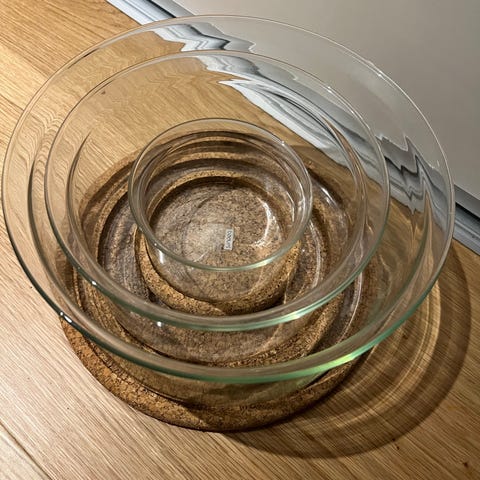 Bodum glas skåle sæt bestående af flere størrelser. 2. ø22 cm, ø17 cm og ø10 cm. Skålene er gennemsigtige og lavet af glas. Sælges samlet.