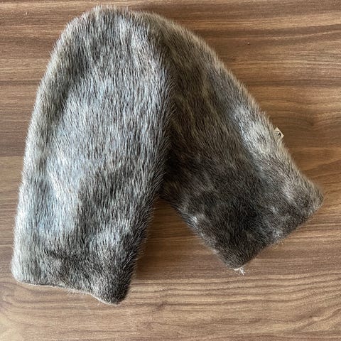 Vanter, Sælskindsluffer, Sælskind, str. M, Ubrugt, Et par unikke og smukke sælskindsluffer//vanter med sort skind i håndfladen.