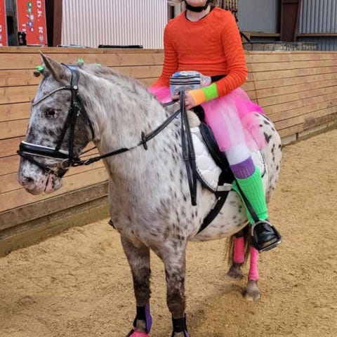 Lady marion den lille røde shetlænder hoppe på 5 år som kan rides og er meget nervefast, kunne være oplagt at lære at gå for vogn. Hun var på Roskilde dyreskue som lille.