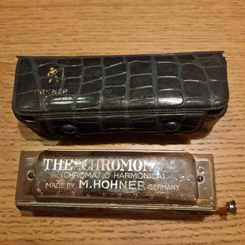 Vintage Hohner Bandmaster Chromatic Mundharmonika med original æske.