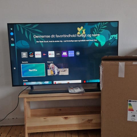 Formidabelt Samsung Smart TV. Det har været i brug i cirka 4 måneder, og har derefter stået opmaganiseret med en lagen over. Der er passet godt på det.