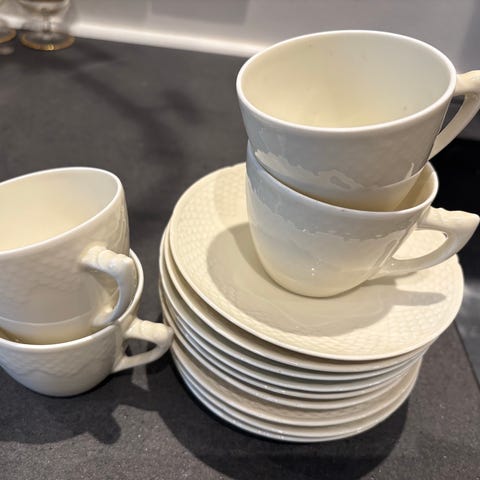 Kopper samt underkopper står i pæn fejlfri stand, uden skår. Sælges samlet. Fast pris.