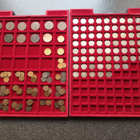 Sverige 2 Øre 1858 til 1971 79 stk + 10 Øre 1876 til 1990 88 stk. Alle mønterne er forskellige.
