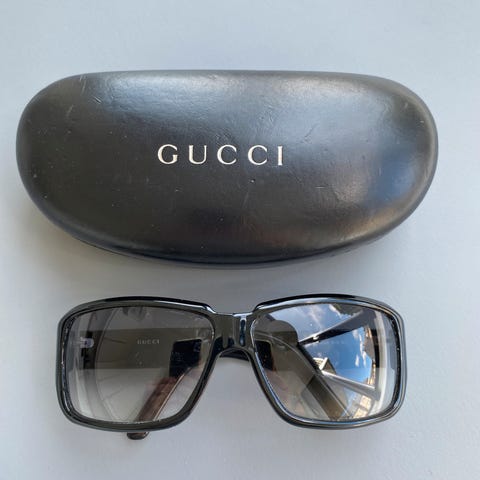 Sælger de her fine Gucci solbriller med tilhørende etui og pudseklud.