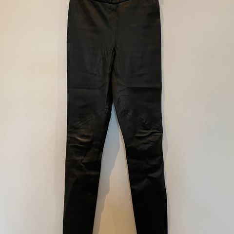 Læderleggins i flot flaskegrøn. Brugt, men i meget god stand