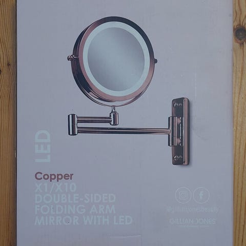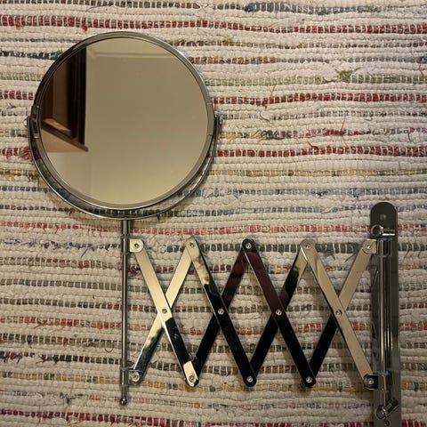 Smedbo vægspejl med 7x forstørrelse. Spejlet har en krom finish og er designet til montering på væggen. Det er egnet til præcisionsopgaver som makeup eller barbering, hvor detaljer er vigtige. Det har aldrig været brugt.