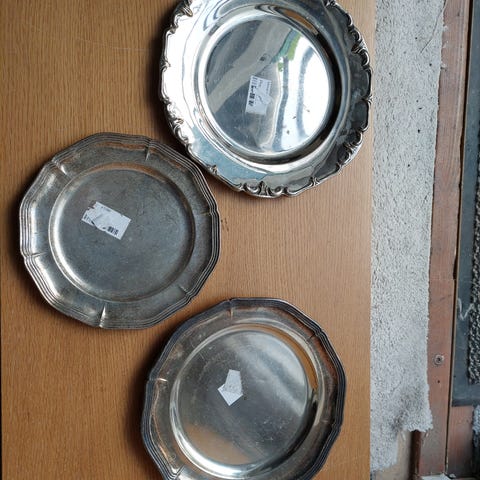 fad forskellige , sølvfarve metal fad med flot kant, skal pudses ellers fejler intet i 2 forskellige str.