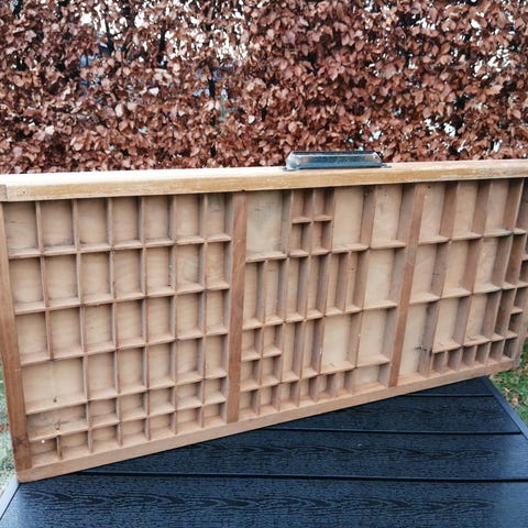 Fin sættekasse eller hylde i lyst træ til ophæng. Brug den til parfumer/smykker eller på børneværelset eller måske i køkkenet til krydderiglas. Der er mange muligheder. Den er 60 cm bred, 50,5 cm høj og 9 cm dyb.