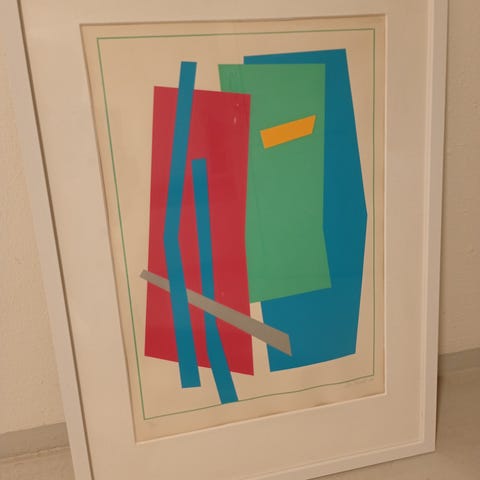 Værket har et ekspressivt og råt udtryk med sort som grundtone og markeringer i rødt og blåt. Professionelt indrammet med glas og aluminiumsramme. Stempel fra Næstved Sociale Virksomhed på bagsiden - peger på regional tilknytning.