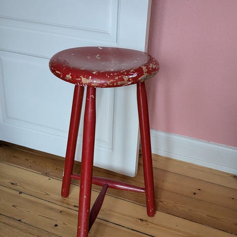 Rød taburet med opbevaring