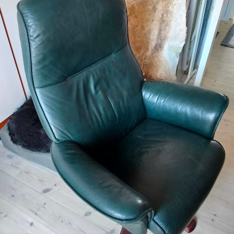 Fin lænestol fra Hjellegjerde med skammel.