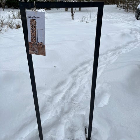 Brændestativ til brug indendørs. Måler højde 111 cm og bredde 34 cm og dybde 34 cm.