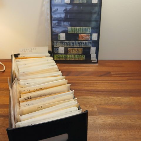 Vesttyskland posekartotek i 3 bokse med mere end 650 pargamentposer med frimærker.