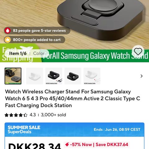 Watch Charger: trådløs USB-A oplader til et Samsung Galaxy Watch
