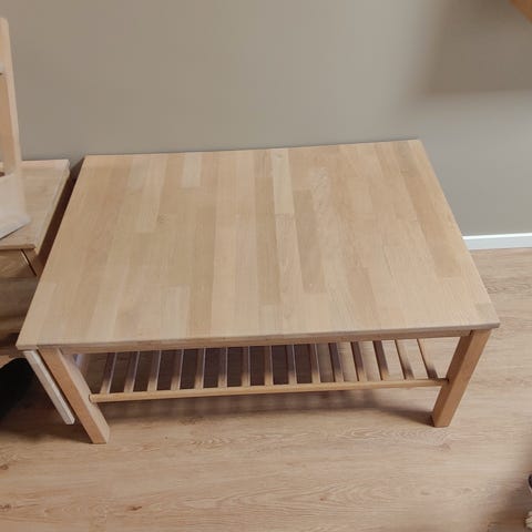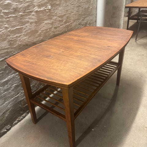 Sofabord med udtræk og hylde.