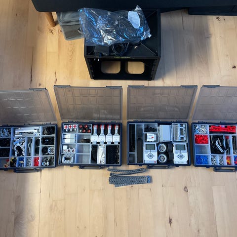 LEGO Mindstorms EV3 Core Set robotbyggesæt indeholder forskellige komponenter til at bygge og programmere robotter. Sættet inkluderer motorer, sensorer, tekniske byggeelementer og en styreenhed med display. Det er designet til at lære om robotteknologi og programmering gennem praktisk konstruktion og eksperimenter.
