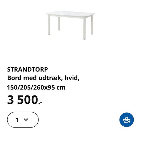 Med udtræk er bordet 215cm.