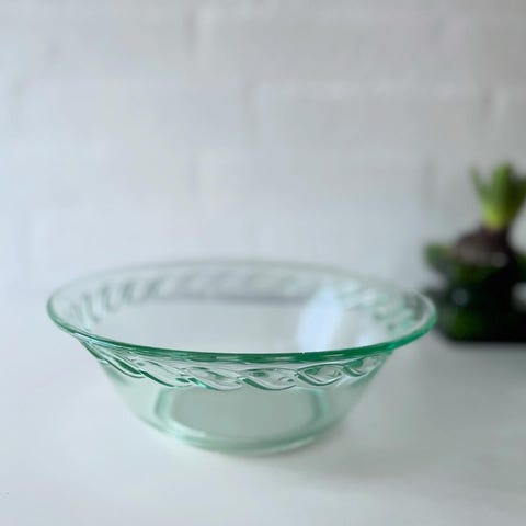 Et lille svensk fad med fine blomsterdetaljer 💚 Har desværre et par skår inden bunden. Er fremstillet af uranglas men gløder ikke så kraftigt ved UV lys.