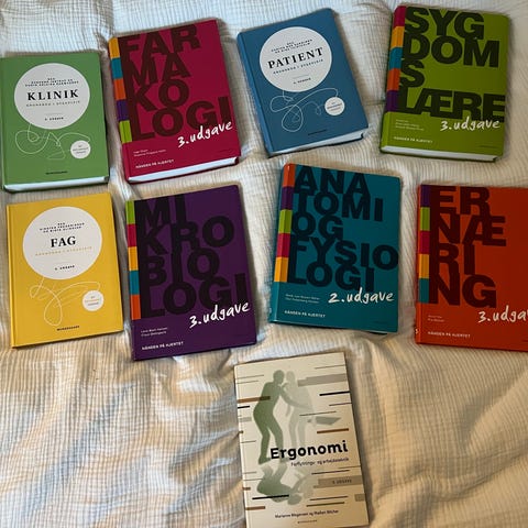 Sættet indeholder fire bøger inden for medicin og sundhed: Klinik - grundbog i sygepleje (2. udgave, ny revideret udgave), Patient - grundbog i sygepleje (2. udgave, ny revideret udgave), Fag - grundbog i sygepleje (2. udgave, ny revideret udgave) samt Lægemiddelregning. Bøgerne dækker grundlæggende emner inden for sygepleje og medicinsk behandling.