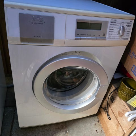 Kapacitet 8 kg centrifugere med 1600 omdr. Har resttidsvisning og udskudt start. Virker perfekt.