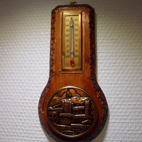 Gammelt udendørs termometer.