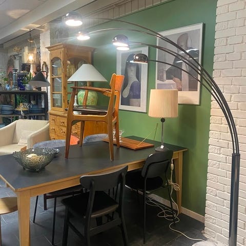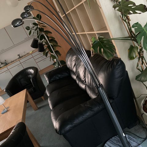 Fem justerbare lampehoveder i krom. Giver både hyggelys og godt læselys og passer perfekt ved sofaen eller i stuen.