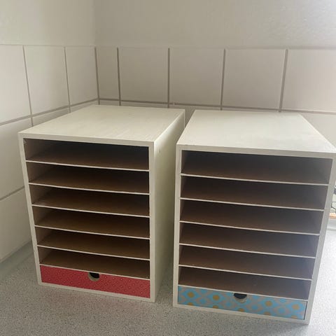 Solide sorte opbevaringskasser med metalgreb og hjørnebeslag. Perfekte til papir, kontor, hobby eller generel opbevaring.