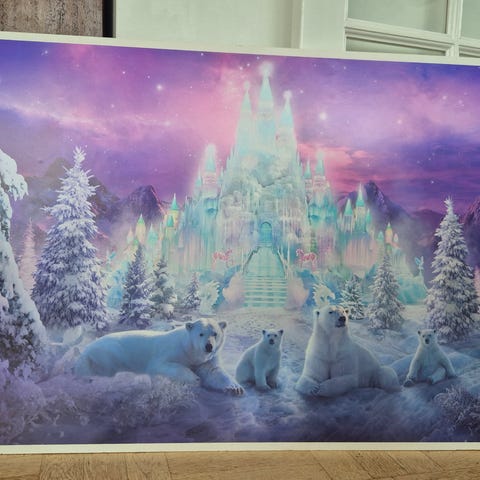 Mette Løvenskiold Kunstplakat Enhjørning med regnbue og slot