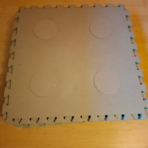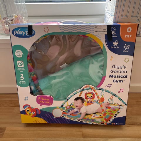 Legegulv med spejl, som motiverer de små til nakketræning🤗. Det kan også anvendes seperat, som vist på billedet. Der er ingen tegn på slid i skummet. Den del har ikke været i brug. Der er ridser i spejlet, som desværre er uundgåligt.