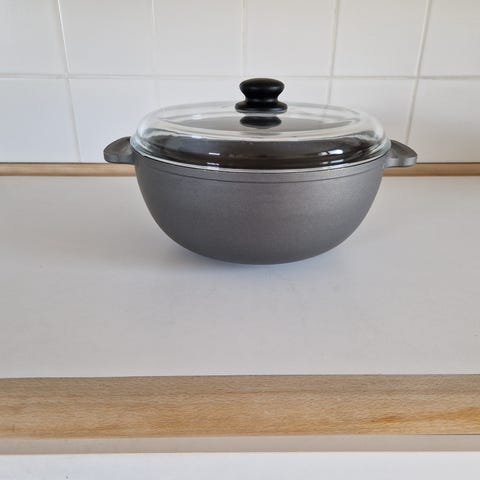 Pyrolux stegegryde, alu med glaslåg, virker ikke til induktion.