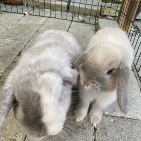 To søde og skønne kaniner søger nyt hjem. De er fra oktober 2023. Coco og Luna er søskende. De har altid gået sammen og trives godt. De har altid gået udenfor i stor voliere med tilhørende hus. Huset kan tilkøbes, hvis dette ønskes.