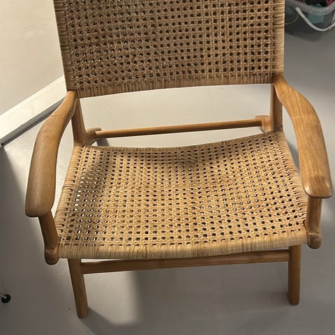 Lavrygget Loungestol/Lænestol,model Saga fra Cinas med flettet papirgarn.