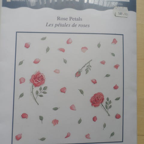 Påbegyndt broderi, broderes med dmc moulinegarn på blågrå hør. Der medfølger desværre ikke broderigarn til at færdiggøre broderiet. Meget elegant mønster, som er sjældent set.