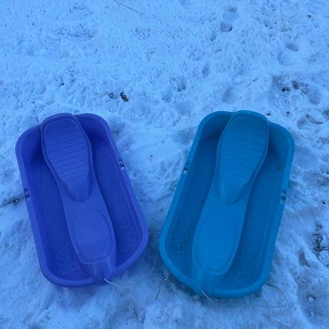 Stiga kælk i rød og sort farve. Kælkene er designet til børn og er fremstillet af holdbart materiale til udendørs brug.