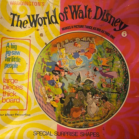 Vintage Waddingtons Verden - et Walt Disney cirkulære puslespil fra 1972.