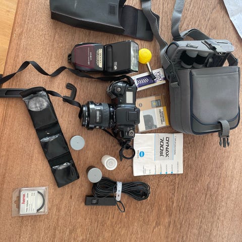 Sælger dette utroligt brugervenlige og velholdte Minolta Dynax 300si spejlreflekskamera (analog). Det er det perfekte kamera til dig, der gerne vil i gang med at skyde på film, da det er fuldautomatisk og meget nemt at betjene.