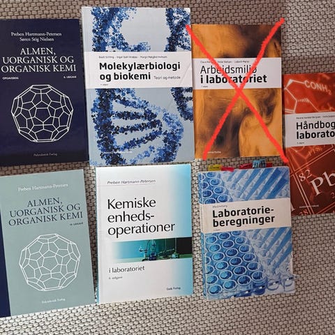 Bøgerne er til laborantstudiet. De er i meget god stand og de fleste af dem er ikke blevet brugt særlig meget.