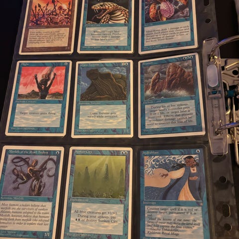Jeg har været i gemmerne og finde 110 forskellige kort fra barndommen. Jeg ved absolut intet om Magic, men de fleste kort er i en rigtig flot stand.