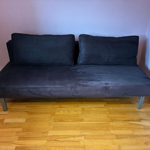 Fin sort sovesofa fra Innovation med opbevarings rum f.eks. til sengetøj.