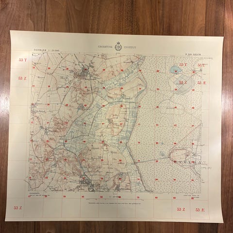 Vægkort fra 1951: Bønnerup Strand og omegn (perfekt stand)